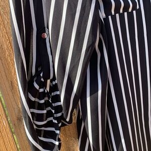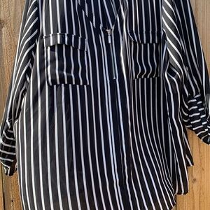 Cato Women’s V-neck Striped Black&White Blouse, Size-26/28W