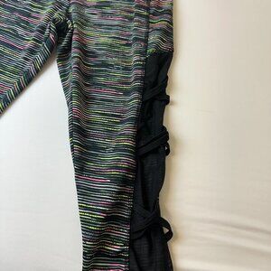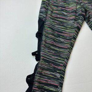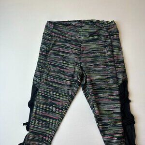 Take A Walk Leggings Womens Medium Black Striped Mesh Side Yoga Pants Athletic