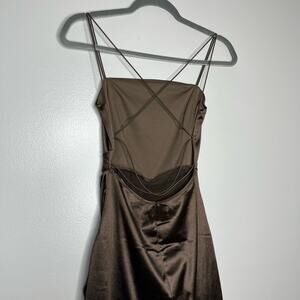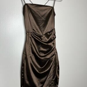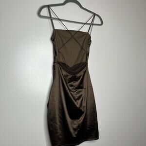 Take Me Higher Chocolate Brown Ruched Satin Strappy Preppy Mini Dress Small