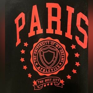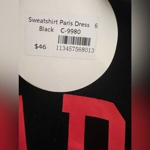 Stylish black dress featuring a bold red Paris graphic. Perfect for everyday wear to pair with sneakers or dress up!