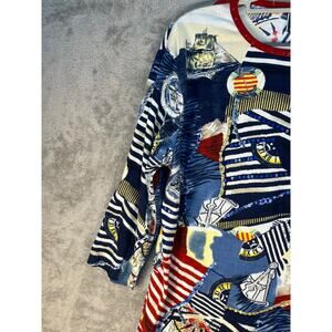 Take Two Blouse 1X Jersey Knit Nautical Sailing Sequin 3/4 Sleeve Country Club