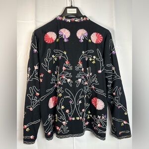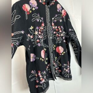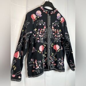 Take Two Clothing Co Womens Floral Embroidered Black Boho Button Up Jacket Sz XL