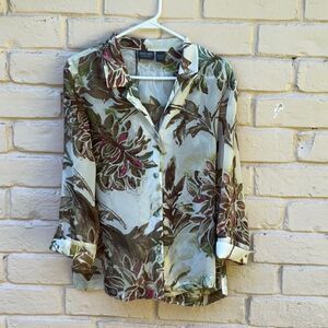 Take 50% OFF-Additions women's short-sleeved button down floral shirt, Size-2(L)