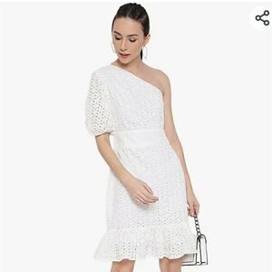 Take 50% OFF- MARC LOUIS White One Shoulder Laced Dress, Size-S