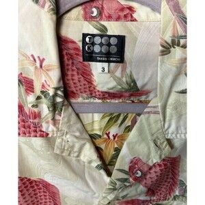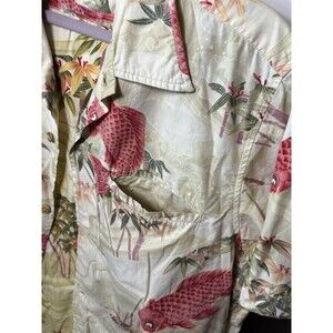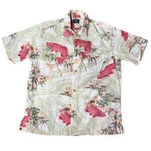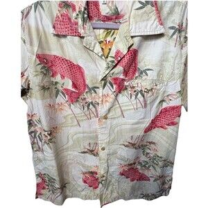 Takeo Kikuchi Japanese Koi Fish Aloha Shirt Men’s Size 3 Large Beige Pink