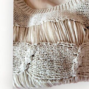 Takeout Short Sleeve Open Weave Tan Luxury Loose Fit Sweater in Size XL