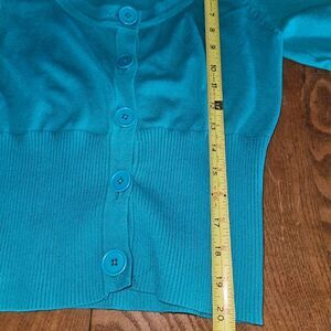 Takeout Teal Blue Cropped Button-Up Short Sleeve Shrug Cardigan Size Large