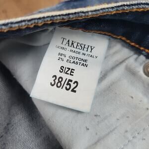 Takeshy Kurosawa Designer Golden Edition Button Fly Distressed Blue Jeans 38/52 Italy Made. Measurements are in the photos. Good pre-owned condition (see all pictures), smoke free home, ships quickly!