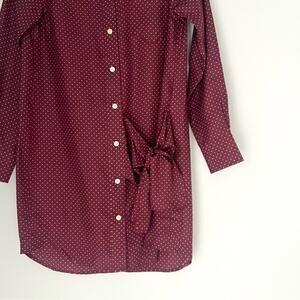 Takoon Silk Wrap Tie Shirt Dress in maroon polka dots Sz XS minimalist oversize