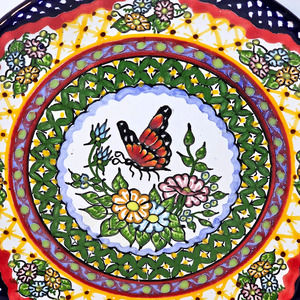 Talavera Arte Espinosa HNOS Pue Mexico Handmade Wall Plate Floral Butterfly 8.5". Beautiful detailed floral design with monarch butterfly centerpiece. No chips or cracks. Hand Painted - Hand Made in Mexico.