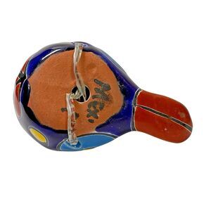 TALAVERA BIRD HAND-PAINTED TERRACOTTA MEXICAN FOLK ART WITH TIES 4"L X 2.25"W X 2"H