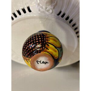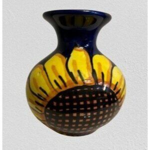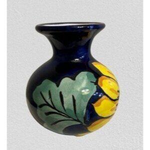 Talavera Bud Vase Mexican Pottery Blue Vase with Sunflowers 4" tall