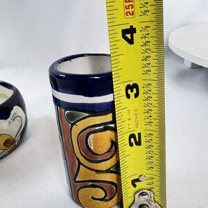 Talavera Mexican Pottery Set Vintage Hand-Painted Shot Glass & Bowl 2 pcs.