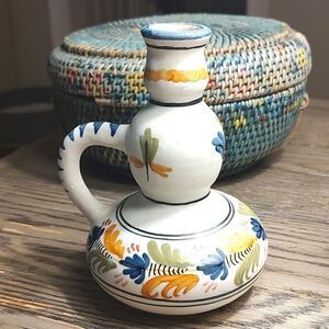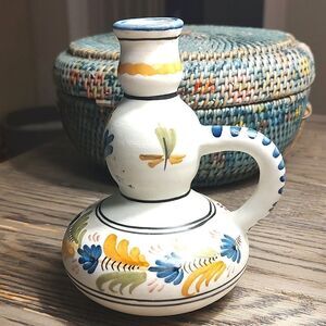 Talavera Pottery Hand Painted Floral Candlestick with Handle Vintage