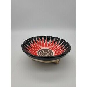 Talavera Pottery Tri Footed Wall Bowl Sunflower Mexican Pottery. Gorgeous bowl. Bright vivid red. Sun or Sunflower design. In exceptional condition. No chips, cracks, or repairs. Item is sold as is. Measurements are inside the photos. Please ask all questions prior to purchase.