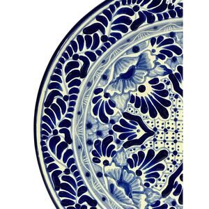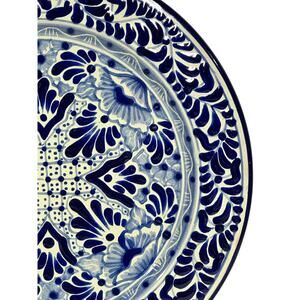 Talavera Puebla Pottery Mexico Cobalt Blue White 12" Charger Plate-Design A