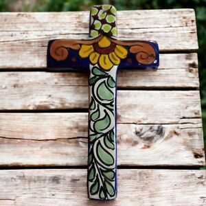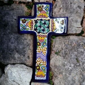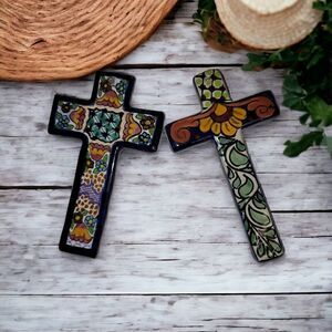 This Mexican Talavera 2 pcs. cross set hand made and hand painted by skilled artisans in Mexico. Covered with a traditional Talavera designs, makes a colorful accent for your home.