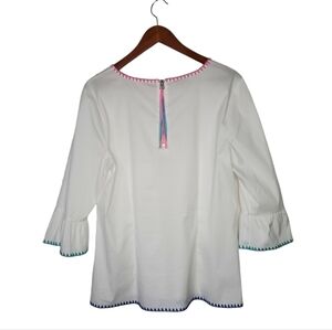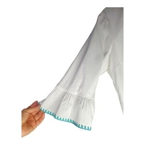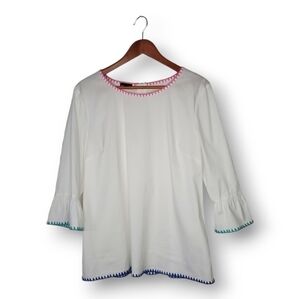Talbolts White Bell-Sleeve Embroidered Trim Detail Top Size M