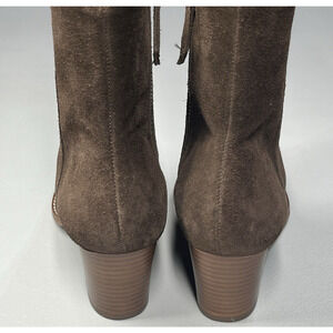 Talbot Ankle Boots Womens 6M Brown Suede Leather Pointed Toe Block Heel Side Zip