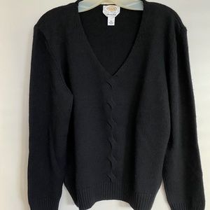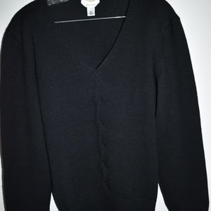 Beautiful Talbots XL Black Cashmere & Italian Wool Sweater. V neck with accented cuffs and waist. 93% wool, 7% cashmere. The sweater has been worn only a few times and looks almost brand new.