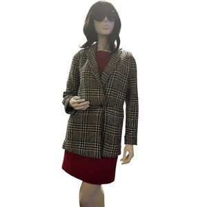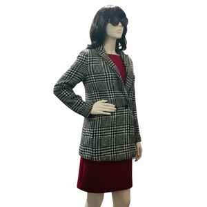 Talbots houndstooth jacket in black and white is a versatile staple for any wardrobe. Featuring a timeless pattern, two-button front, and front pockets (decorative), it offers effortless sophistication whether worn to work or layered casually. Lightweight and unlined, it’s perfect for transitional weather or indoor wear. Flat Measurements (approx.), Pit to Pit: 18", Waist: 18", Sleeves: 23", Length: 28". Excellent Condition | Size: 4 | Color: Black and White. Top-rated seller, same-day shipping! Shop my closet for more trendy and vintage items to complement your style. Bundle & save!