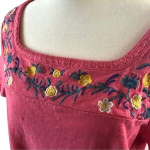 Talbot Cotton Popover Top Women LP Pink with Multicolor Floral Embroidery