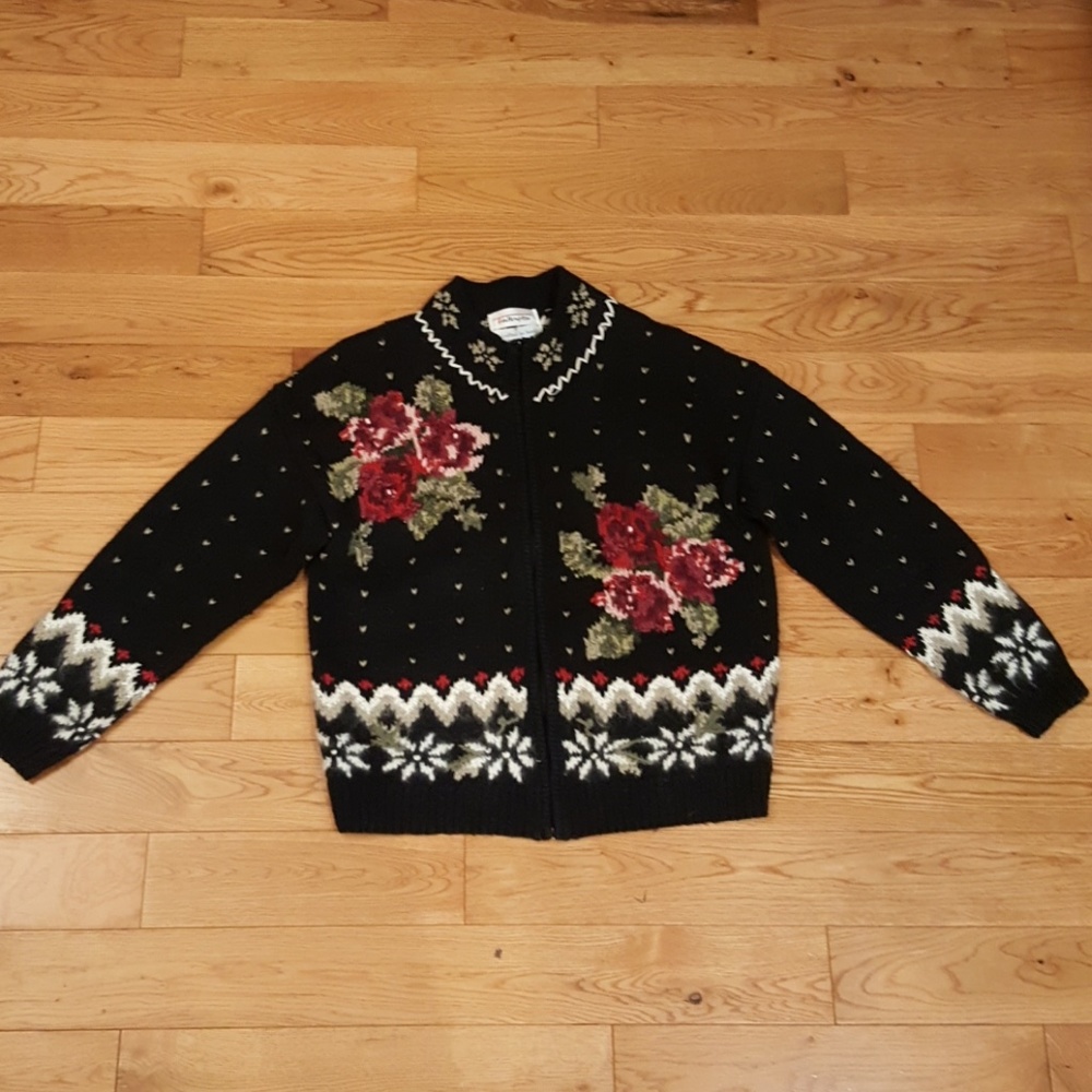Knitted by hand Talbot jacket with zipper in middle, no pockets.