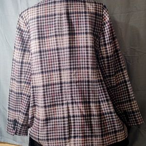 Plaid colored with buttons double breasted on the front long sleeves jacket.
