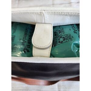 Talbot Leather Purse, Black and White Color Block. Well loved, but miles left in this beautiful bag. No rips or tears, minor wear, the handles have a little stitching coming loose. See photos for condition and measurements. Most reasonable offers are accepted