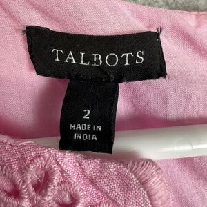 Talbot Linen Cotton Scalloped Crochet Pink Lined Shift Dress Sleeveless Women 2