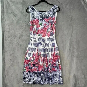 Talbot Mosaic Floral Sateen Fit & Flare Pink Blue Pleated Dress Knee Length Sz 8