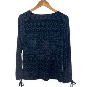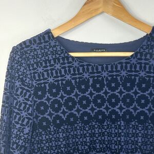 Talbot Navy Blue Burnout Velvet Blouse Size S Long Sleeve Damask