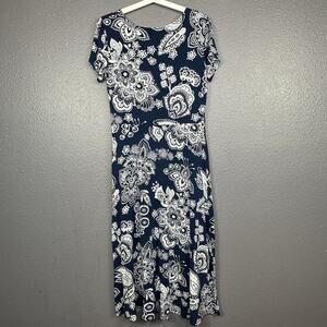 Talbot Paisley Midi Dress size Medium Blue White Pullover Stretch