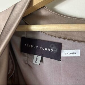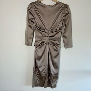 Talbot Runhof Beige Satin Cocktail Dress 3/4 Sleeve Size 4