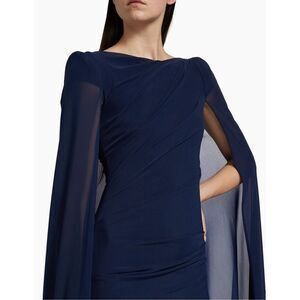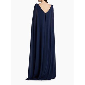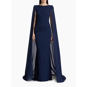 Talbot Runhof Cape Effect Gathered Tulle Gown Navy Size 34/4 $2275