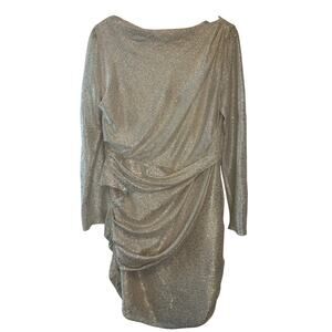Talbot Runhof Gold Silver Metallic Draped Cocktail Party Mini Dress Size 14