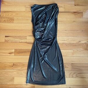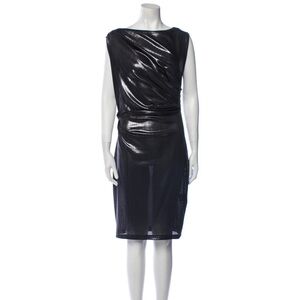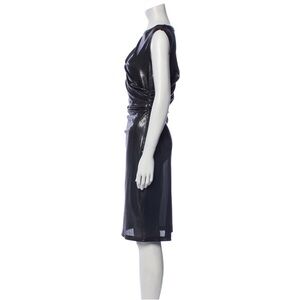 Talbot Runhof Gunmetal Sliver Ruched Sleeveless Knee-Length Dress EUC Medium