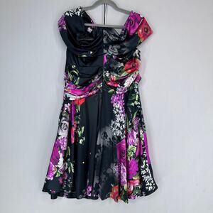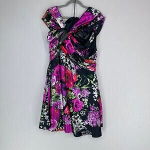 Talbot Runhof Silk Floral Cocktail Dress Black Pink Women’s EU 44
