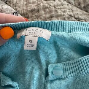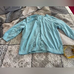 3/4 Sleeve button up Teal in color. Made by Talbots. Size XL- please see photos for some pilling and measurements.