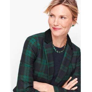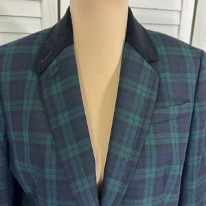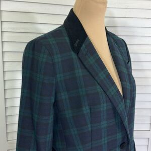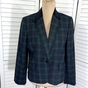 Talbot Tartan Plaid Peplum Blazer Size 8P Green Wool Blend