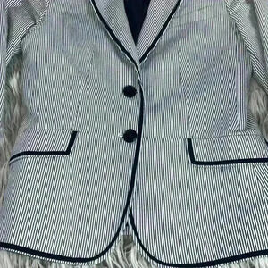 Talbot The Grace Fit Classic Navy Pinstripe Seersucker Blazer 2 Buttons