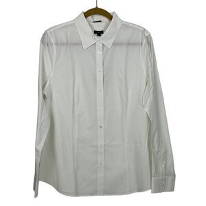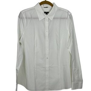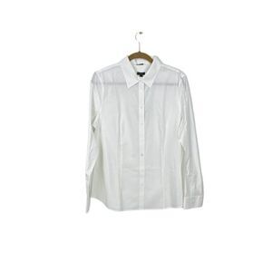 Chic and sophisticated, this Talbot long sleeve white blouse in size 16 is perfect for any occasion. Made from 96% cotton and 4% spandex, it features a pointed collar and buttons down the front, offering a fitted look. Wrinkle-resistant for hassle-free wear.