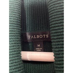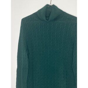Talbots 100% Cotton Cable Knit Turtleneck Sweater Pine Green Size Medium