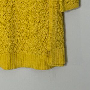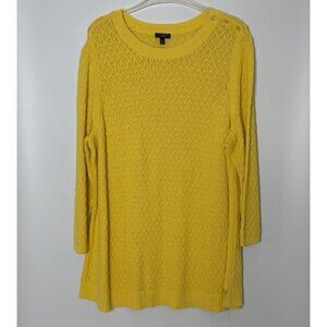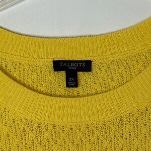 Talbots 100% Cotton Diamond Print Knit Boatneck Tunic Sweater Ribbed Yellow 2X