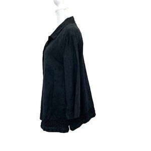 Talbots 100% Irish Linen Embroidered Lace Button Front Shirt Black size Large