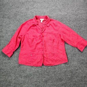 Talbots 100% Irish Linen Lagenlook Button Down Pink Shirt Womens 18W