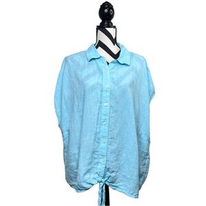 Talbots 100% Linen Beachy Coastal Aqua Sz 2X Button-Down Front Top.