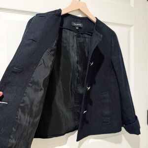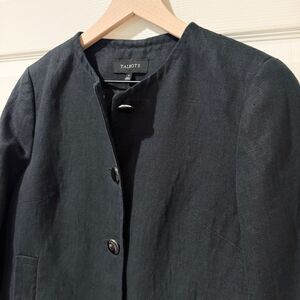 Talbots 100% Linen Black Button Up Jacket Cuffs Minimal Neutral Pockets Chic 4