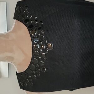 Talbots 100% Linen Black Dress w/Black Beaded Design at Neckline, EUC, Size 10. Sleeveless, Back Zipper Closure, Textured Linen. Excellent Condition, no rips, stains, snags or holes. Please refer to measurements in photos to ensure proper fit.
