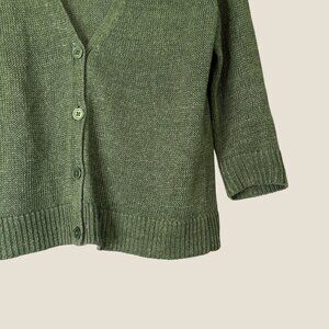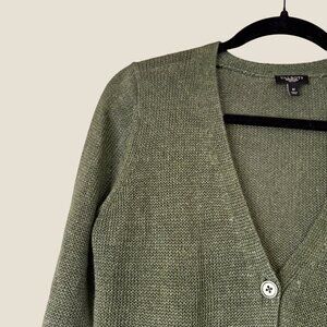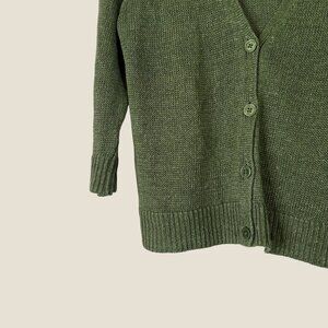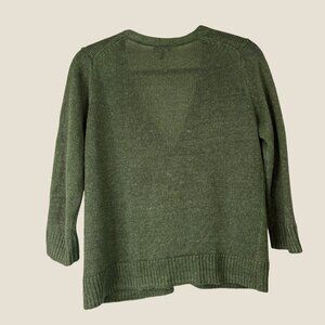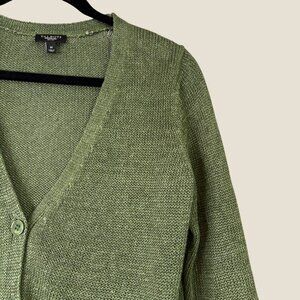 Talbots 100% Linen Green Loose Knit Button V Neck Cardigan 3/4 Sleeve Size M